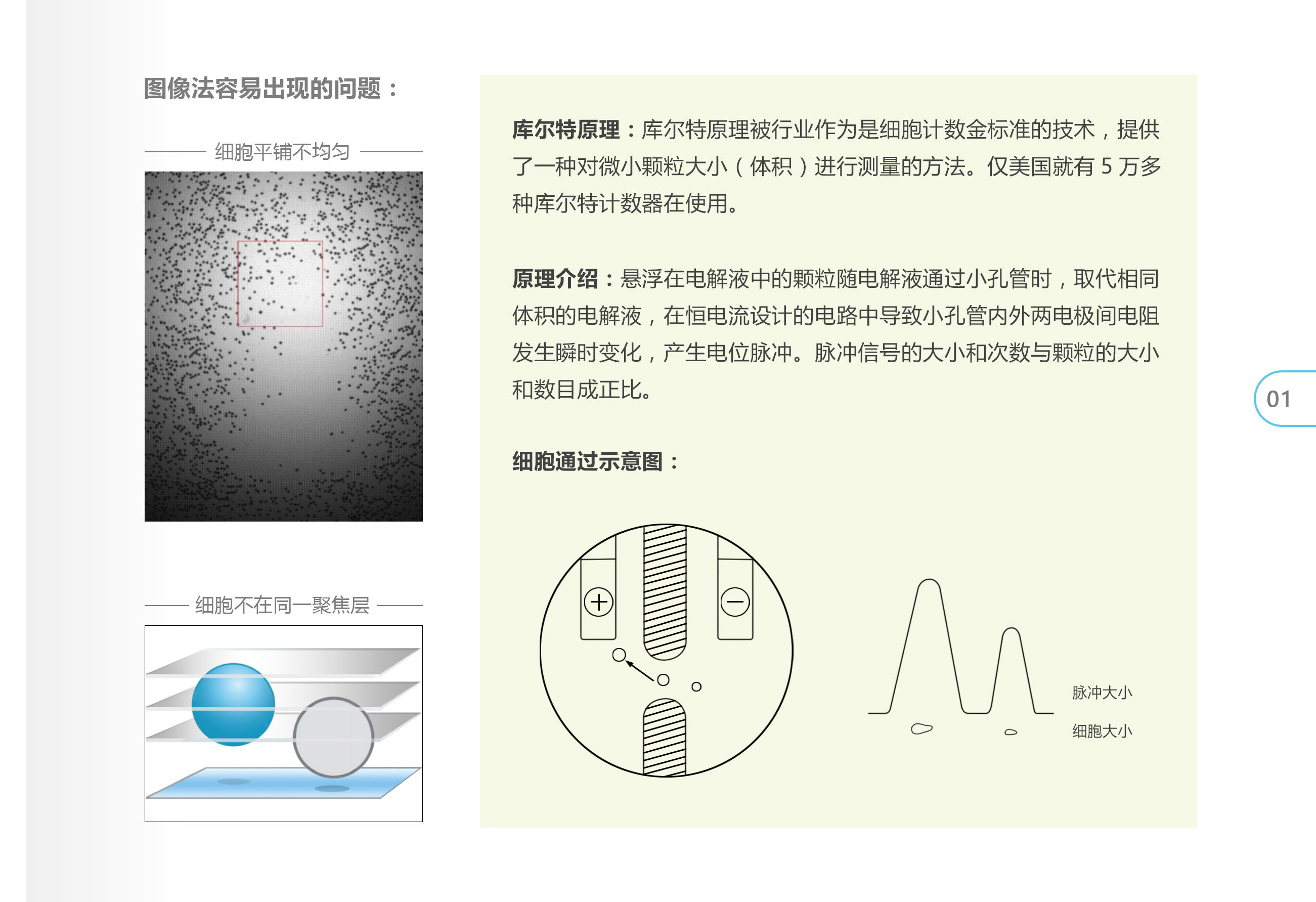 庫(kù)爾特原理被行業(yè)稱作細(xì)胞計(jì)數(shù)金標(biāo)準(zhǔn)的技術(shù),專為細(xì)胞應(yīng)用而設(shè)計(jì),其將細(xì)胞計(jì)數(shù)與細(xì)胞直徑大小測(cè)量功能合二為一,可用于細(xì)胞、顆粒計(jì)數(shù)及粒度分析。