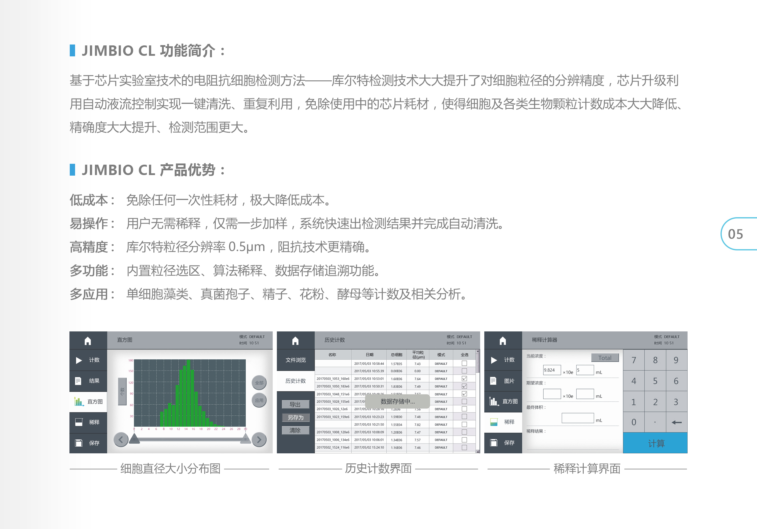 Jimbio CL采用流式庫(kù)爾特原理,庫(kù)爾特粒徑分辨率0.5μm,阻抗技術(shù)更精確;