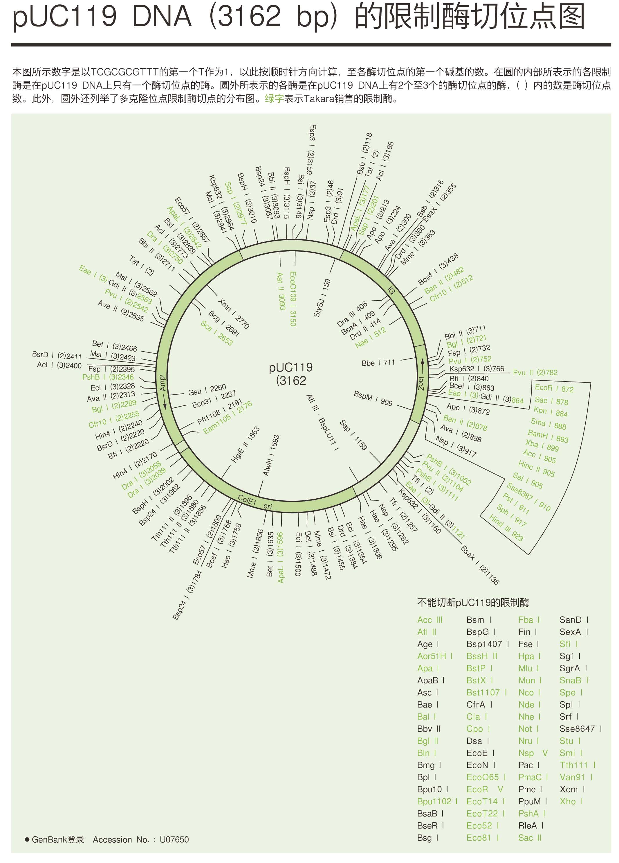 pUC119 DNA的限制酶切位點(diǎn)圖