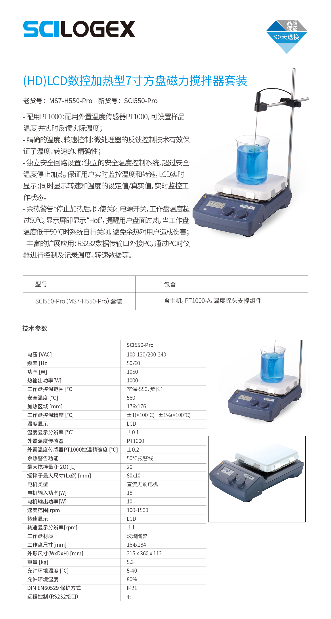 新SCI550-Pro老MS7-H550-Pro套裝 LCD數(shù)控加熱型7寸方盤磁力攪拌器