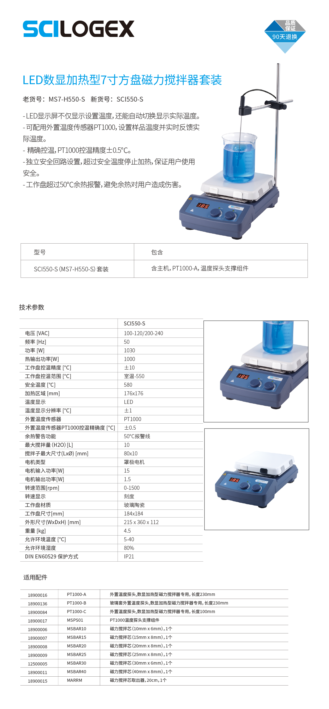 新SCI550-S老MS7-H550-S LED數(shù)顯加熱型7寸方盤磁力攪拌器套裝