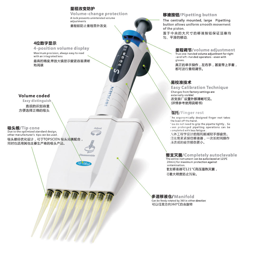 拓普森S系列8通道,12通道可調(diào)移液器,121℃整支消毒,一年質(zhì)保