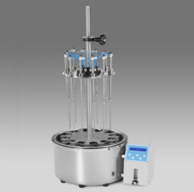 WD1000水浴氮吹儀采用微電腦控制技術(shù)和PID 控制方式結(jié)合而成的高精密度控制儀器,其工作原 理是將氮?dú)饪焖佟⑦B續(xù)、可控地吹到加熱樣品表面 ,根據(jù)被濃縮溶劑的蒸發(fā)速度和沸點(diǎn)、設(shè)定加熱溫 度,實(shí)現(xiàn)大量樣品的快速無(wú)氧濃縮。水浴氮吹儀包 括底座和支架裝置、樣品架和氣體分配系統(tǒng)。試管 通過(guò)帶彈簧的試管夾和支撐盤來(lái)固定位置。每個(gè)樣 品位都有數(shù)字編號(hào);氣體通過(guò)流量計(jì)到達(dá)氣體分配 系統(tǒng),靈活的引導(dǎo)管將氣體導(dǎo)入每個(gè)位置的閥和不 銹鋼針,將氣體吹至樣品表面,從而使溶劑快速揮 發(fā)。根據(jù)試管大小和溶劑多少,各導(dǎo)氣管可獨(dú)立升 降至合適的高度。