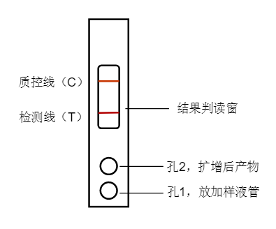 陽性結果表明樣本中含有待檢測的核酸片段,且其數(shù)量≥檢測卡的最低檢出量。當目的核酸產(chǎn)物濃度較低時,試紙條C線顯色呈紅色,T線呈淡紅色,甚至淺粉色條帶,該結果也應判定為陽性。當目的核酸產(chǎn)物濃度較高時,試紙條C線顯色呈紅色,T線呈紅色,該結果也應判定為陽性。