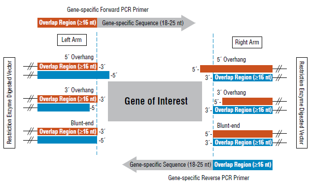按照線性載體末端的結(jié)構(gòu)(5’突出,3’突出,平末端),引物設(shè)計(jì)也分3種情況,示意如下: