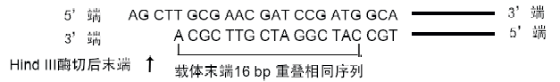 如上圖,載體由Hind III 酶切開,形成5’突出末端: