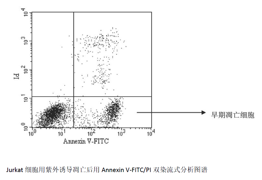 細胞凋亡早期改變發(fā)生在細胞膜表面,這些細胞膜表面的改變之一是磷脂酰絲氨酸(PS)從細胞膜內(nèi)轉(zhuǎn)移到細胞膜外,使 PS暴露在細胞膜外表面。PS是一種帶負電荷的磷脂,正常主要存在于細胞膜的內(nèi)面,在細胞發(fā)生凋亡時細胞膜上的這種磷脂分布的不對稱性被破壞而使 PS暴露在細胞膜外。AnnexinV具有易于結(jié)合到磷脂類如PS的特性,對 PS有高度的親和性。因此,該蛋白可充當(dāng)一敏感的探針檢測暴露在細胞膜表面的 PS。PS轉(zhuǎn)移到細胞膜外不是凋亡所獨特的,也可發(fā)生在細胞壞死中。兩種細胞死亡方式間的差別是在凋亡的初始階段細胞膜是完好的,而細胞壞死在其早期階段細胞膜的完整性就破壞了。因此,可以采用 AnnexinV與 PI雙染的方法,通過流式檢測細胞早期凋亡。儲存條件: